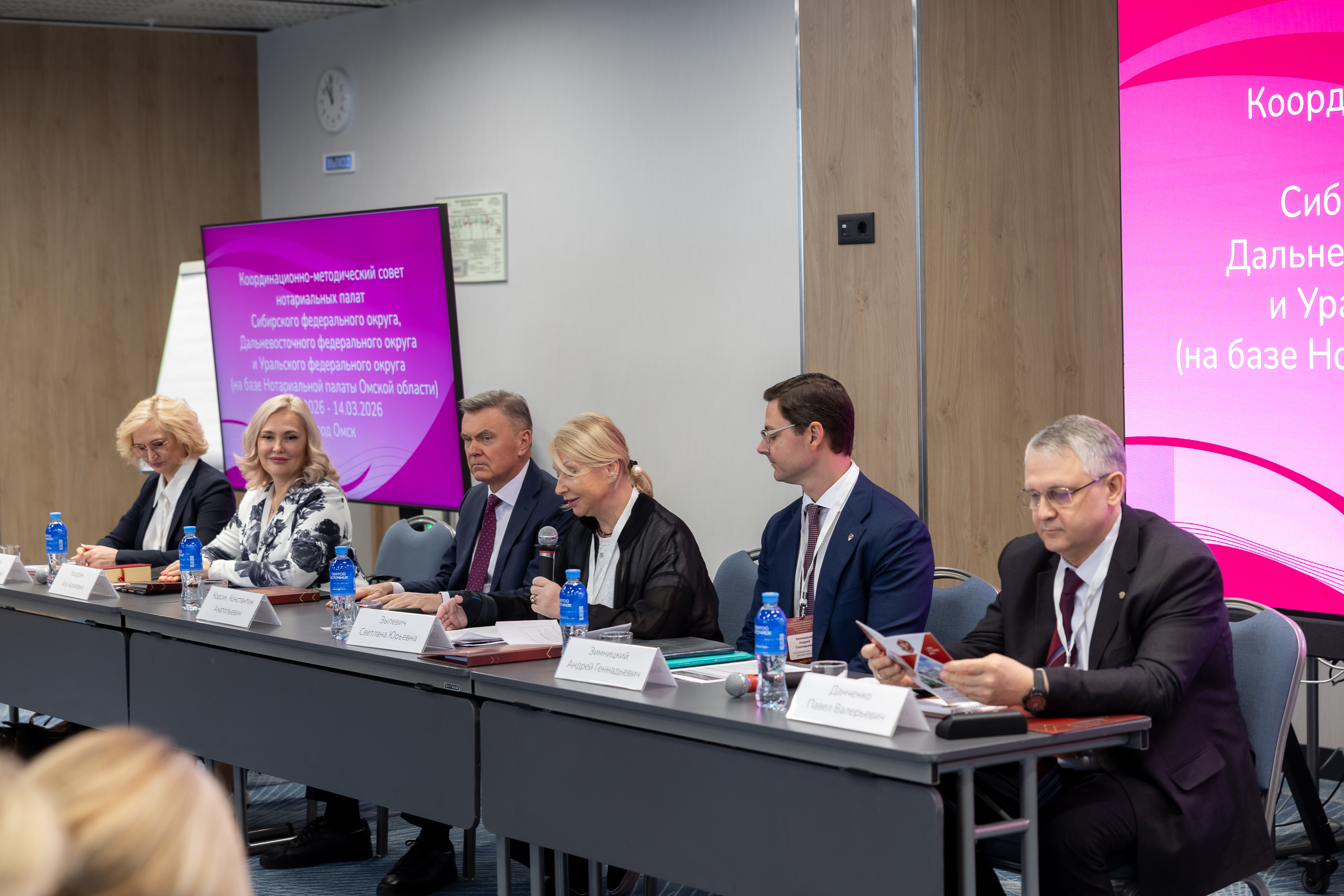 Также участников заседания приветствовали начальник Управления Министерства юстиции РФ по Омской области Павел Данченко, председатель КМС нотариальных палат Сибирского федерального округа, вице-президент ФНП, президент Нотариальной палаты Красноярского края Светлана Зылевич, председатель КМС нотариальных палат ДФО, президент Нотариальной палаты Амурской области Ася Казарян, председатель КМС нотариальных палат УрФО, президент Нотариальной палаты Свердловской области Ирина Перевалова и президент Нотариальной палаты Омской области Андрей Зимницкий.